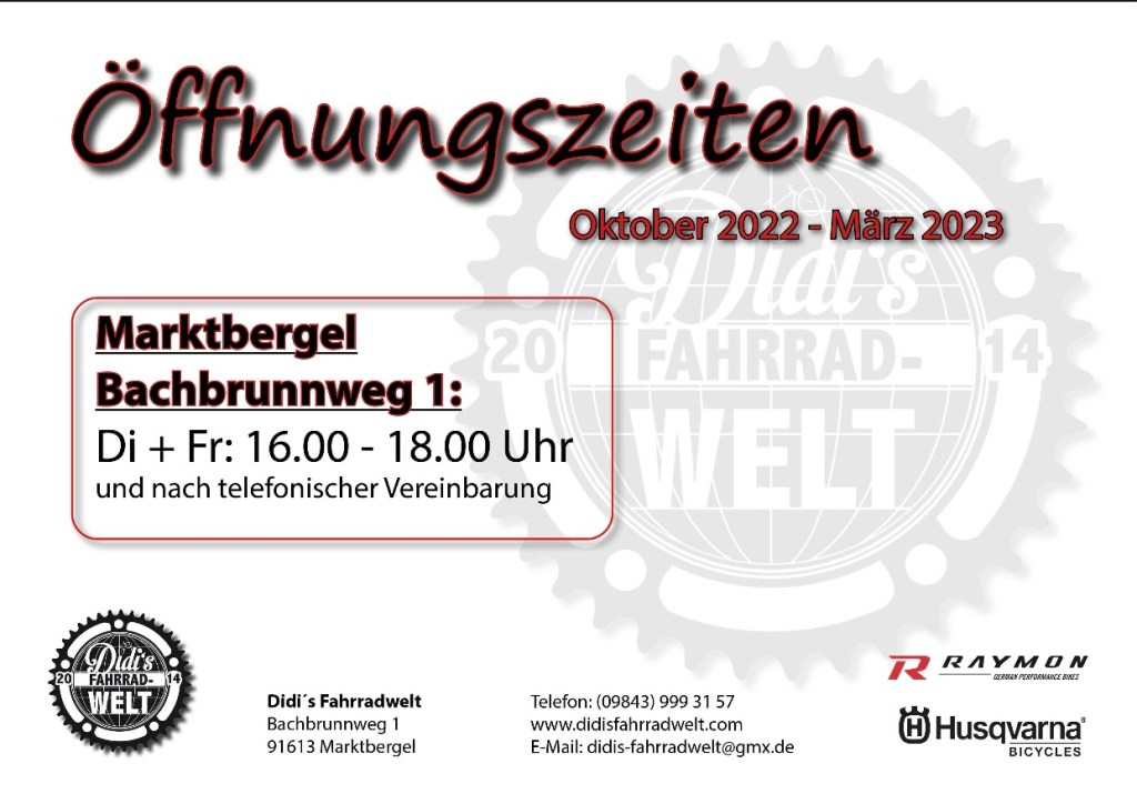 NEUE ÖFFNUNGSZEITEN MARKTBERGEL NUR NOCH MARKTBERGEL im Bachbrunnweg 1 Neue Telefonnummer Bis bald Euer DIDI oeffnungszeiten-april-sep
